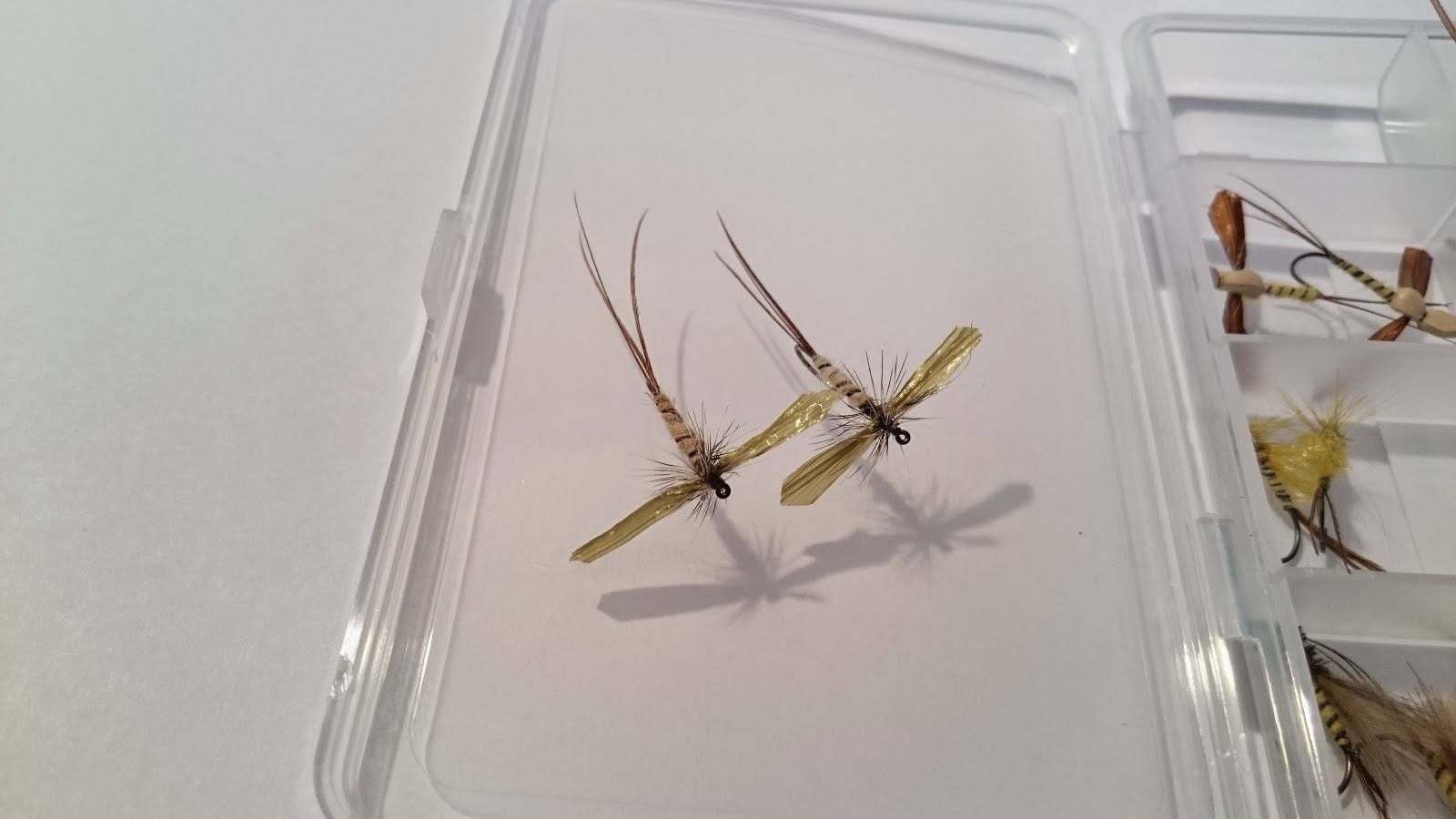 There are four different Mayfly patterns included with two tied on strong size 12 barbless hooks and another two in size 10. The sixteen flies are presented in a six compartment box. All are of the highest quality and are hand tied.